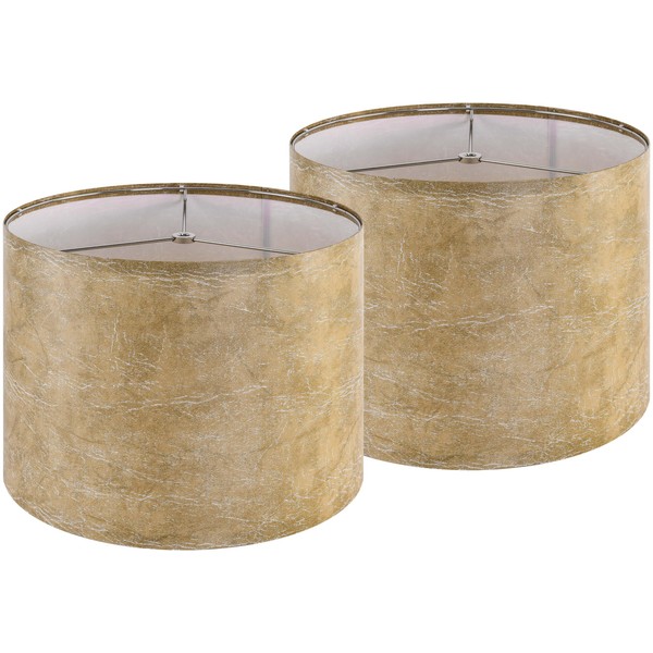 Set of 2 Medium Lampshade, Imitation Leather Fabric Drum Lampshade 13" Top x 13" Bottom x 10" High(Spider), Yellowish-brown Lamp Shade for Table Lamps Floor Lamps, Bedside Lamps, Assembly Required
