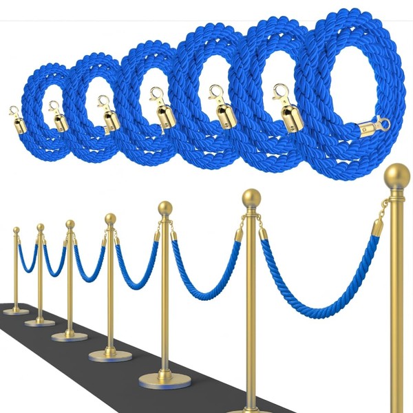 Set of 6 Blue Twisted Rope 5FT – Durable Barrier Line for Events Crowd Control Stanchion Rope Stanchions Stanchion Posts with Ropes for Ceremony Party Theater Business Entrances
