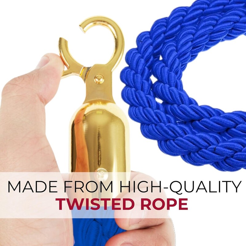 - PREMIUM BRAIDED MATERIAL: Strong blue twisted rope with reinforced hooks designed for indoor and outdoor use—ideal for crowd control barriers and exclusive entry lines.