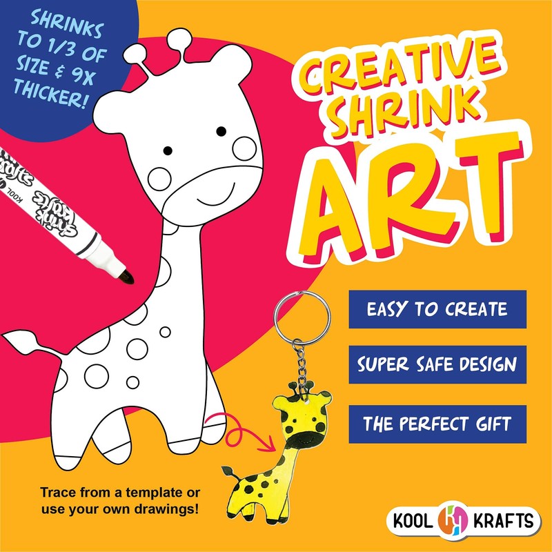 - CUTE, FUN, CREATIVE SHRINK ART: Create adorable charms and keychains for you and your friends with Kool Krafts! Our amazing shrink art set will provide you with the tools you need to craft uniquely designed shrinky bits to carry with you anywhere you go!