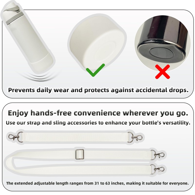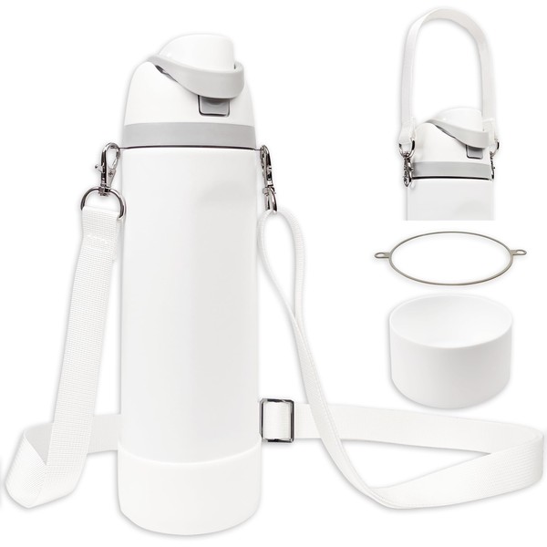 - Hidden Design: The connector is discreetly hidden between the lid and the bottle body, with a stainless steel material that securely fastens the shoulder strap to the water bottle. Whether you're running or walking, you won't have to worry about the bottle coming loose