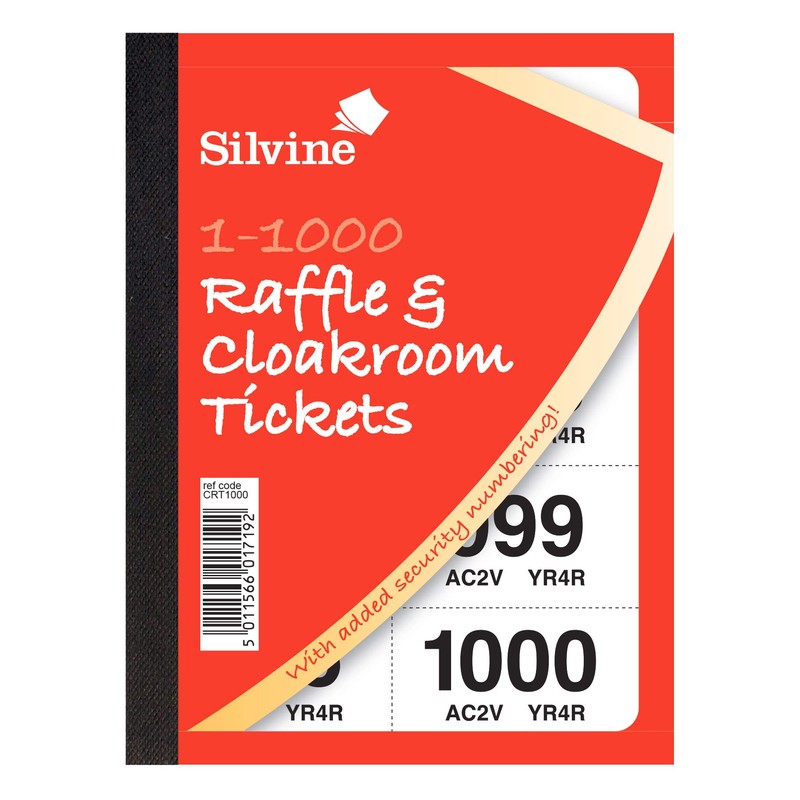 Silvine Cloakroom/Raffle Tickets, Numbered 1-1000 with Security Numbering. Ref CRT1000, Single