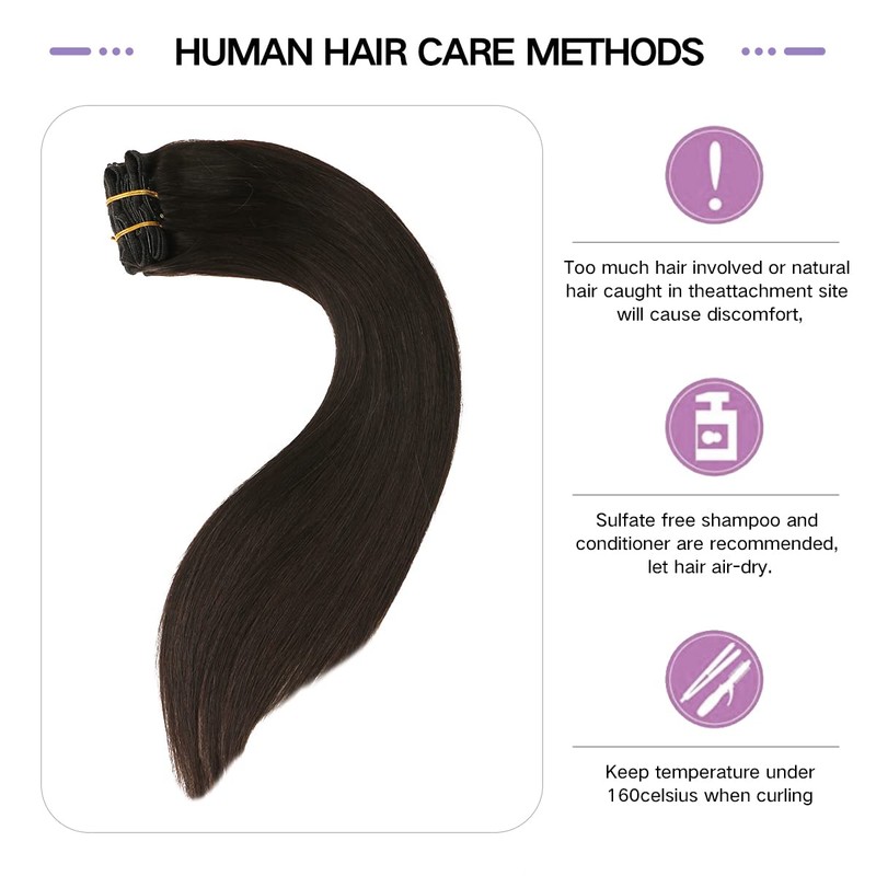 - Great hair quality and firm clips: Our clip-in hair extensions are made of human Remy hair, feel soft and are as natural as your own hair. They last 2-3 months with proper care, the clips are strong and hold well to prevent hair loss