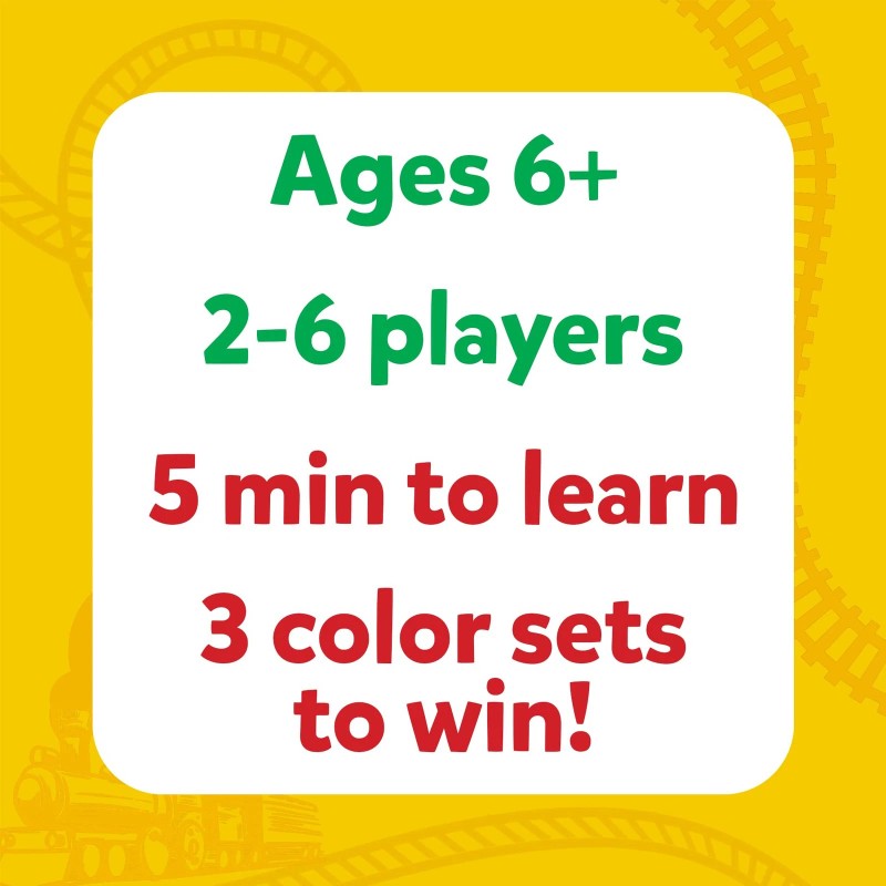 • HOW TO WIN: Each player draws a card from the center and takes turns answering questions. Cards are of 3 colors, each color represents a train compartment. Be the first player to complete your 'Train of Thought' by collecting 3 complete compartment sets, 1 set of each of the 3 colors of cards.