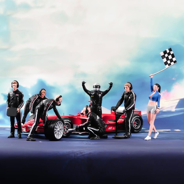 SOUFORCE 1/18 Scale 7pcs Scene Props Figure Racing Driver Six Maintenance Man Team Miniature Action Figure Model