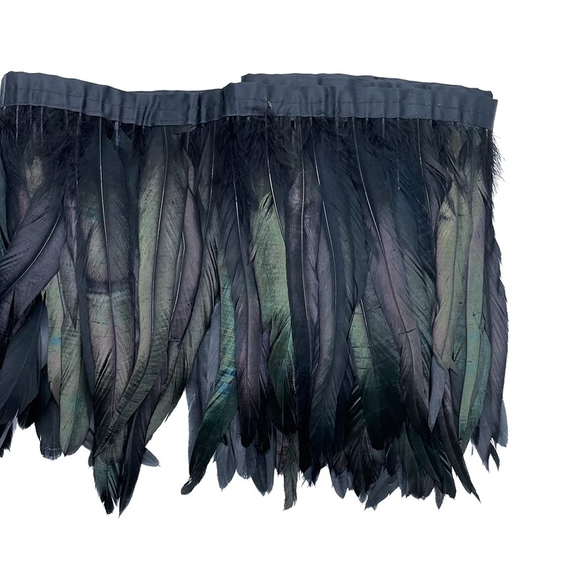 Sowder Rooster Hackle Feather Fringe Trim 8-10inch in Width for DIY Sewing Craft Decoration Pack of 1 Yard(Black)