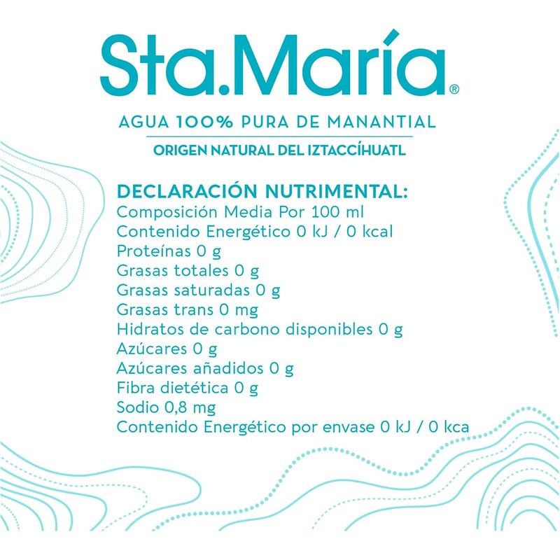Sta. Maria Agua Natural, Agua 100% Pura de Manantial, Paquete de 12 Botellas de 1L c/u