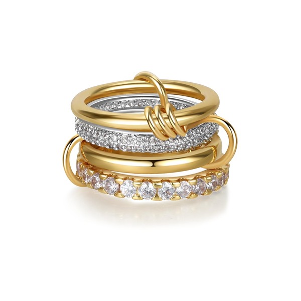- Interlocking Ring Stack Set: Our Stackable Rings for Women are expertly crafted from 18K real gold plated and platinum plated brass, ensuring durability and a lustrous finish. The AAAAA cubic zirconia adds a sparkling touch without compromising on comfort, making these rings hypoallergenic, waterproof, and non-tarnish.