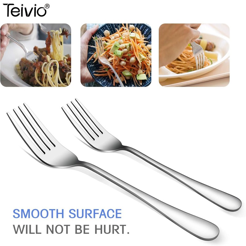 Teivio Stainless Steel Metal Serving Utensils - Large Set of 9-10" Spoons, 10" Slotted Spoons, and 9" Tongs (Silver)