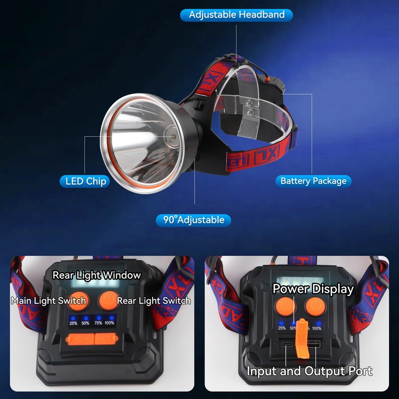 - 【🔦 Powerful & Long-Lasting: 10000mAh Battery】Equipped with a high-capacity 10000mAh battery, this headlamp delivers up to 10 hours of continuous use on a single charge. Built with ultra-efficient LEDs and a lifespan of up to 100,000 hours, this headlamp eliminates the hassle of frequent bulb replacements, saving you time and money while providing reliable, long-lasting light.