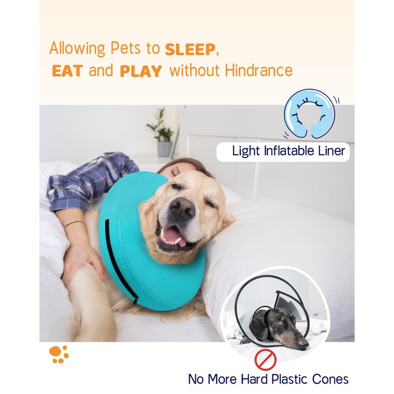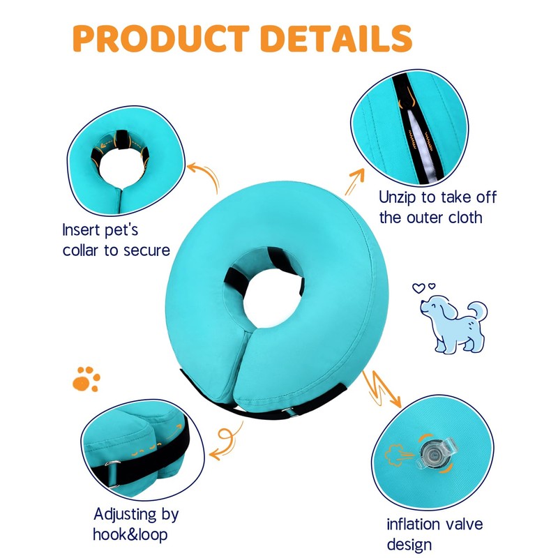 - WARM PROMPT - If your pet wants to escape when he/she put on the dog protective collar for the first time, we hope you can work with your dog to acclimate him/her. And due to differences in dog breeds, body sizes, and growing environments, this blow up dog collar after surgery may not be suitable for dogs with long noses, long legs, long tails, and long bodies. Any more questions, we are here to assist you, we sincerely wish your pet a speedy recovery.