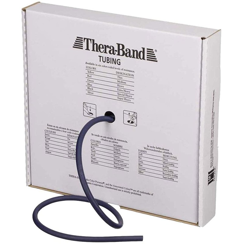 TheraBand Resistance Tubes, Professional Latex Elastic Tubing For Full Body, Core Exercise, Physical Therapy, Lower Pilates, At-Home Workout, & Rehab, 25 Foot, Blue, Extra Heavy, Intermediate Level 2