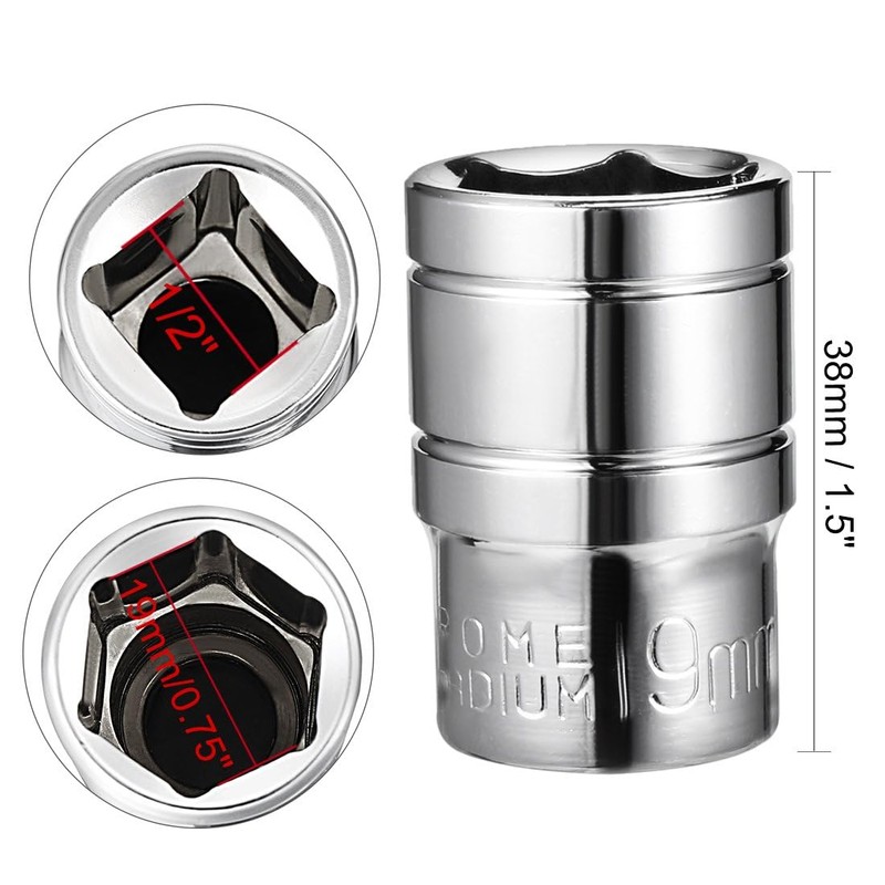 - 【Size & Package】1/2-inch drive, 19mm 6-Point Shallow Socket, 38mm total long. Package including: 2Pcs x 6-Point Shallow Socket.