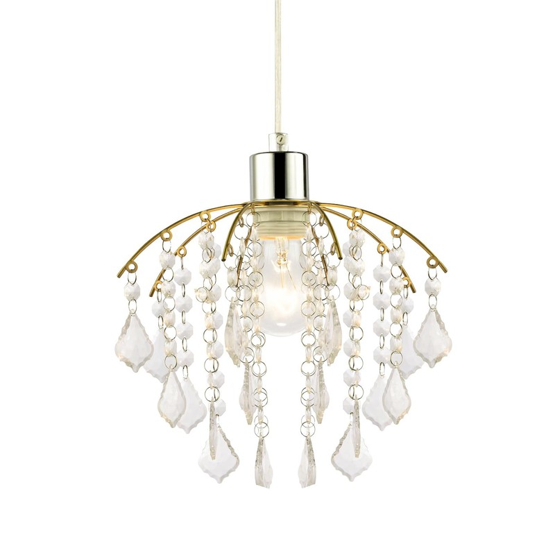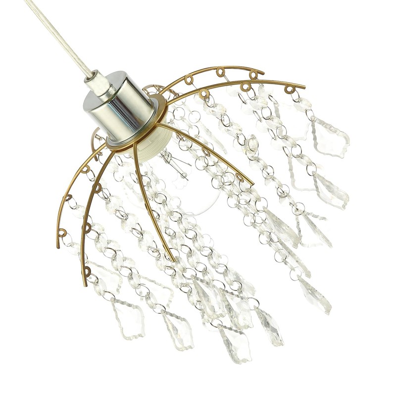 - Traditional classic pendant lamp shade with brushed gold metal frame and waterfall design acrylic droplets. Simply attaches to your existing pendant cable wire.