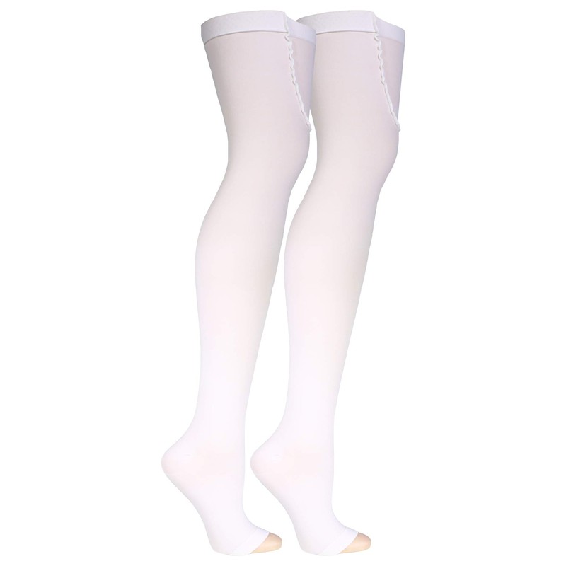 - Expandable thigh panel; silicone grip top band; knit Heel pocket, easy inspection Toeless Foot