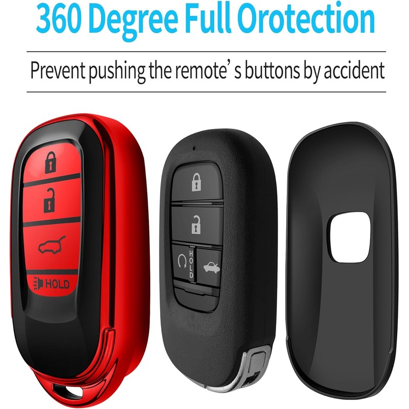Tukellen for Honda Key Fob Cover, Premium Soft TPU Full Protection Key Fob Case for 2022 2023 2024 2025 Accord Civic HR-V CR-V Pilot Smart 4-Buttons Smart Remote Key Protector (Red)