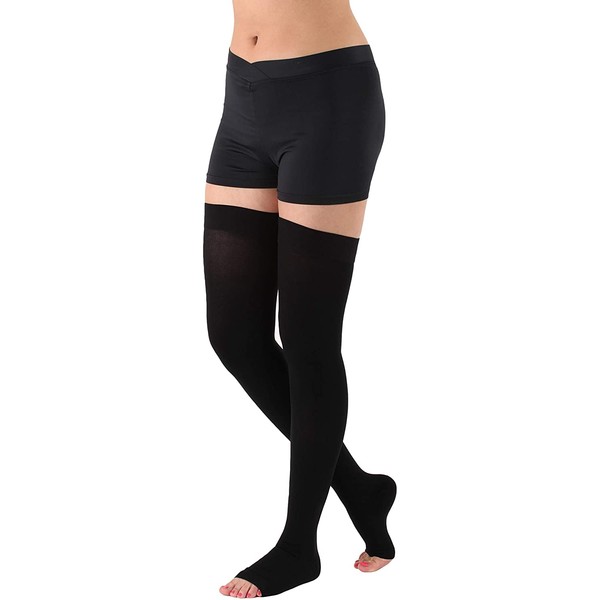 - Size SMALL - Thigh High Compression Socks for Woman and Men are manufactured with gradient medical compression technology to help with leg swelling, spider and varicose veins, blood circulation, post surgery, leg pain, venous insufficiency, blood clots and DVT