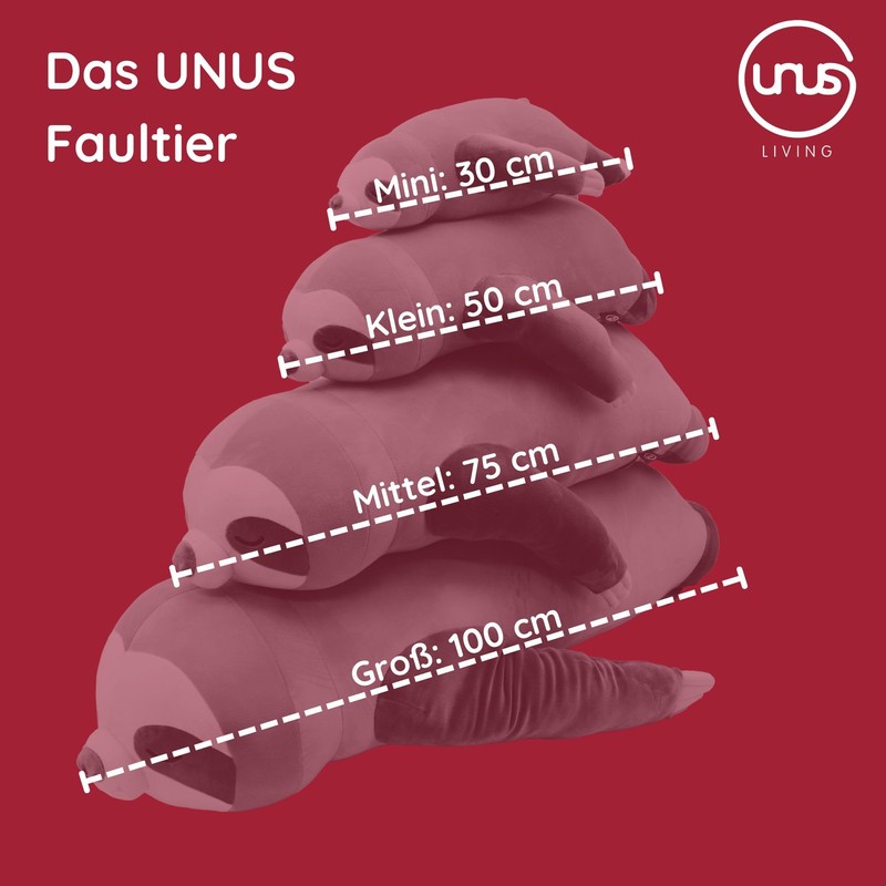 The UNUS plush pillow in the shape of a sloth is made of high-quality material, is particularly durable and is ideal as a side sleeper pillow, nursing pillow or as a neck support when travelling in the car or on the plane. Thanks to the different sizes offered, there is something suitable for everyone.