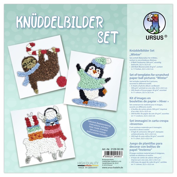 Ursus 21290008 - Doodle Pictures "Winter", Craft Set for Children from 3 Years, with 6 Motif Templates and Coloured Tissue Paper, for Making Pictures from Paper Balls