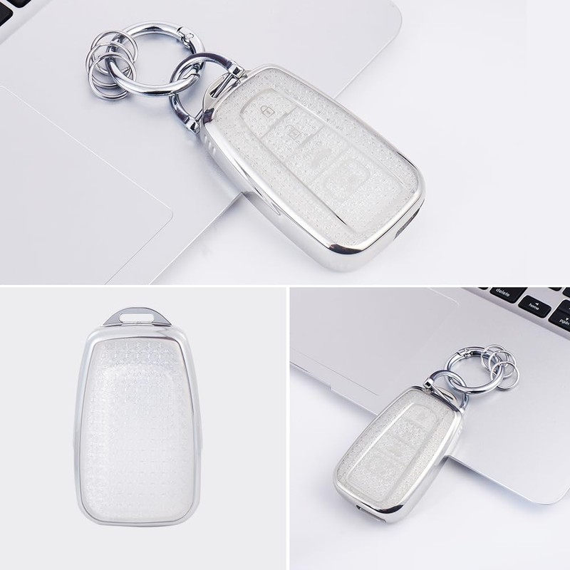 • The white & silver car key fob case for Toyota has the new crystal texture inside the front and back, made with premium TPU, thin, soft, cute, trending looking and pretty durable, make your key fob look new and special.There were plenty of hoops and loops on the key chain that you could use to organize other keys as well.