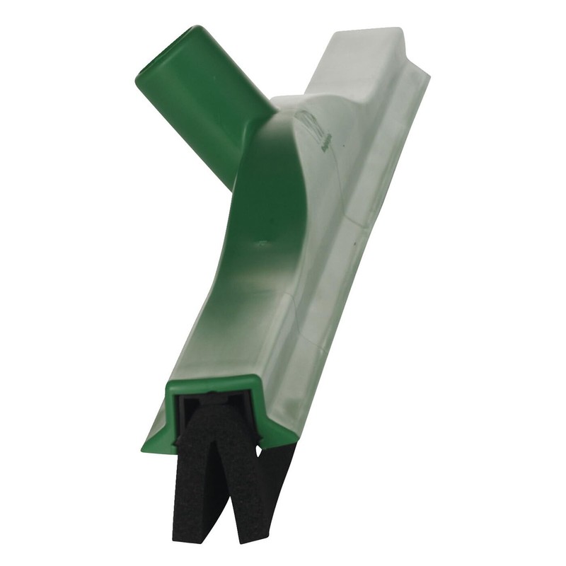 The neoprene rubber blades on this squeegee make it the most effective squeegee in the Vikan range. It is excellent on all types of floors, as the soft rubber reaches into and cleans all spaces on the floor, such as grouting between tiles. The cartridge system blades can be removed for easy cleaning and replaced when worn out, making the model a very economical option. Replacement squeegee blades 77745 or 77749. May be used with any European- thread handle.