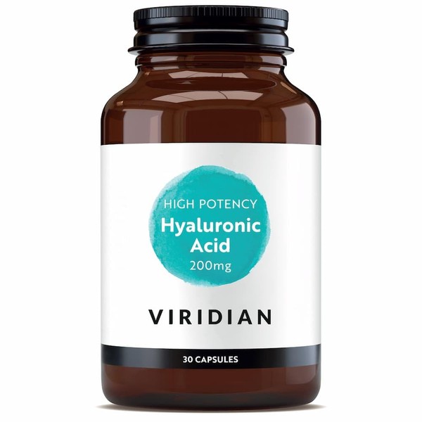 Product DescriptionViridian Hyaluronic Acid 200mg - 30 CapsulesIngredientsIngredients per capsule: Hyaluronic Acid 200mg. On a base of spirulina, cranberry and alfalfa. Vegetarian Cellulose Capsule (HPMC*) 100 mg *Hydroxypropylmethylcellulose (HPMC). Net quantity: 30 vegetarian capsulesDirectionsAs a dietary supplement, one capsule a day with food, or according to the recommendation of the specialist. The expressly recommended daily dose for this product should not be exceeded.Safety WarningFood supplements should not be used as substitutes for a balanced and varied diet and a healthy lifestyle. Keep out of reach of children. If you are pregnant, breastfeeding, have any illness or are undergoing medical treatment, consult your specialist before taking this product.