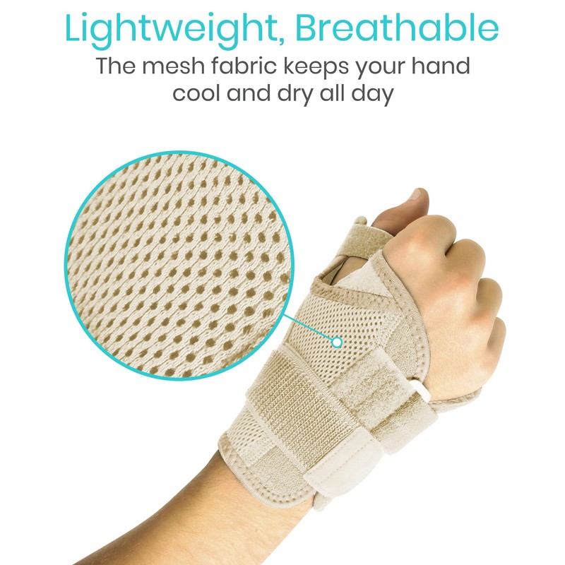 - VERSATILE LIGHTWEIGHT DESIGN: Fully adjustable, the lightweight neoprene brace can be worn on either the left or right hand. Three extra strength fastener straps adjust to accommodate any hand size without slipping or bunching. The neoprene is breathable, keeping your hand cool and comfortable for extended wear, even while you sleep.