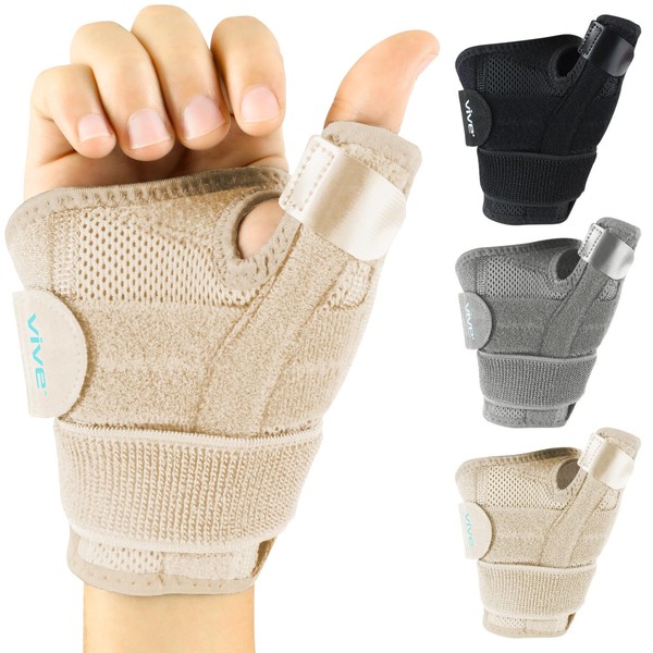 - STABLE SUPPORT FOR THUMB: Supporting the thumb joints and ligaments, the Vive thumb brace restricts the movement of the thumb while supplying adjustable compression and retaining therapeutic heat to improve circulation and promote healing. The lightweight brace allows the full use of the remaining fingers so you can complete daily tasks with ease.
