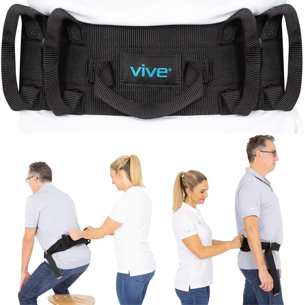 Vive Gait Belt (300lbs) Transfer Belt with Handles - Medical Nursing Safety Patient Assist - Bariatric, Elderly, Handicap, Physical Therapy - PT Gate Strap Quick Release Metal Buckle, Grabbing Teeth