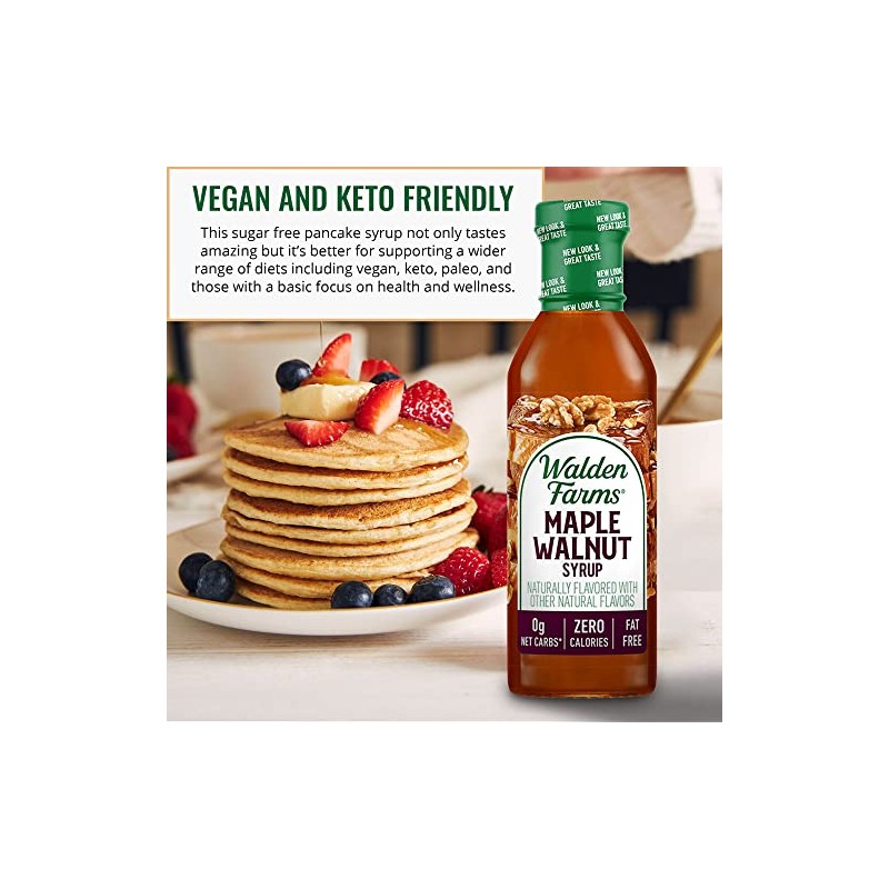 Walden Farms Maple Walnut Syrup 12 oz, Sweet Syrup - Near Zero Fat, Sugar and Calorie - For Pancakes, Waffles, French Toast, Coffee, Tea, Desserts, Snacks, Appetizers and Many More