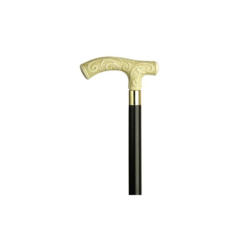 Walking Cane - Men's antique ivory derby handle-high impact durable plastic handle with brass collar on black wood shaft, 36" long with rubber tip.