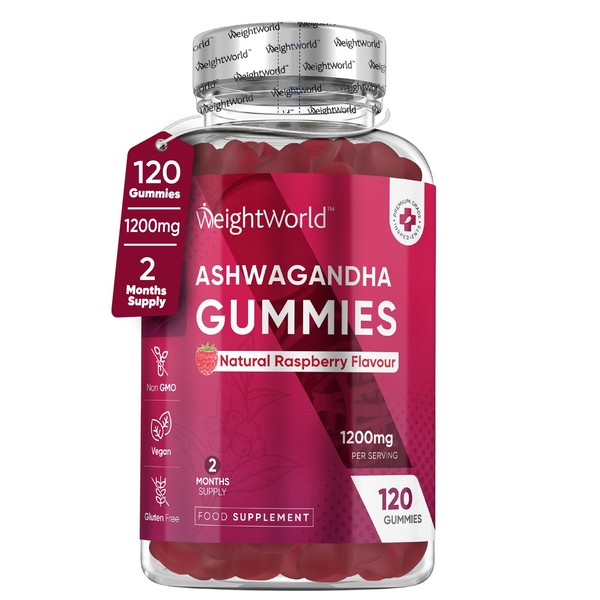 WeightWorld Ashwagandha Gummies 1200mg | 120 Gummies - 2 Months Supply, Raspberry Flavour, Ashwagandha High Strength Root Extract Supplement, Bioavailable, Alternative to Ashwagandha Powder, Vegan & Gluten-Free