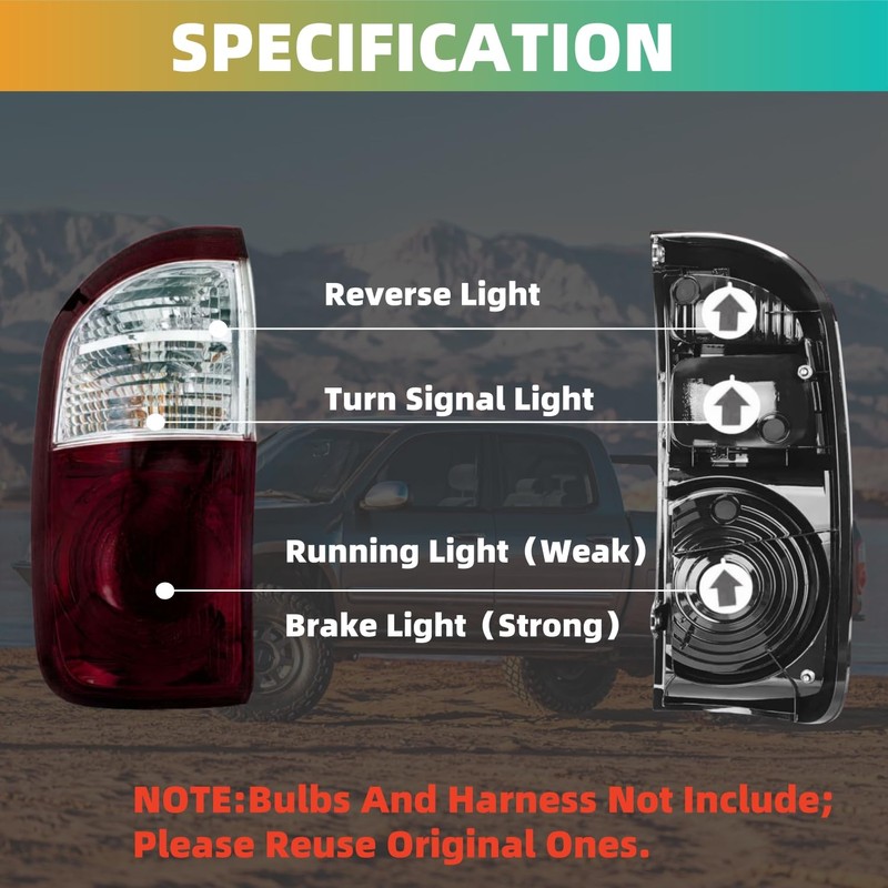 - 【 DOT / SAE COMPLIANCE 】— Replaces Original (OE) Part: Left-815600C040; Right-815500C040. ABPA Partslink No.: Left-TO2800153; Right-TO2801153. These Tail Lights will not only improve the appearance of your car, but also conform the strict guidelines of DOT and SAE compliant.