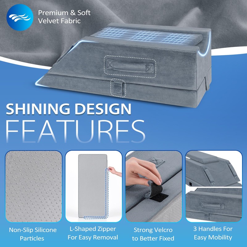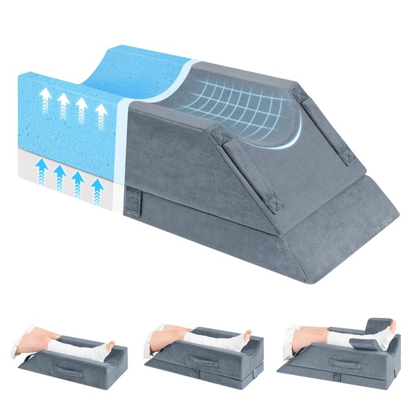 Wellsin 4-Height Adjustable Leg Elevation Pillows for After Surgery, Knee and Ankle Injuries, Memory Foam Leg Wedge Pillow with 3 Handles, 1 Insert Pad and Washable Velvet Cover