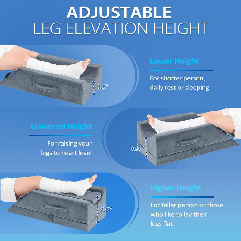 - Customized 4 Adjustable Height Leg Pillow: The upgraded adjustable height from 3.5" to 10.7" is specially customized for you, to elevate your entire leg above heart level no matter your height. You can add insert pad or remove 1-2 layers to the height you need