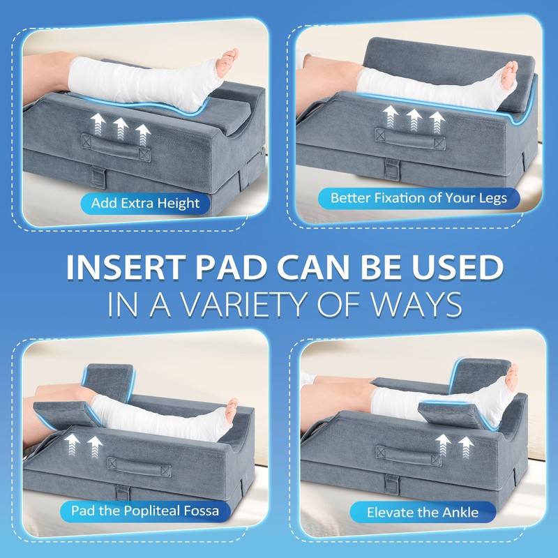 - Multi-purpose Insert Pad: Wellsin knee surgery pillow comes with an insert pad, if you don't like the groove, you can put the pad under the whole leg to add 1.2" of height, or put it on one side of the leg to make the groove narrower to better fix your injured leg