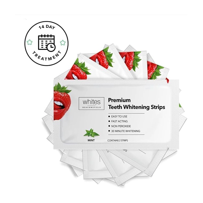 Whites Beaconsfield Teeth Whitening Strips, 28 Strips (14-Day Treatment) – Non-Peroxide Formula, Enamel-Safe, Brighten Teeth Fast, Removes Coffee, Wine, Smoke Stains, Safe for Sensitive Teeth
