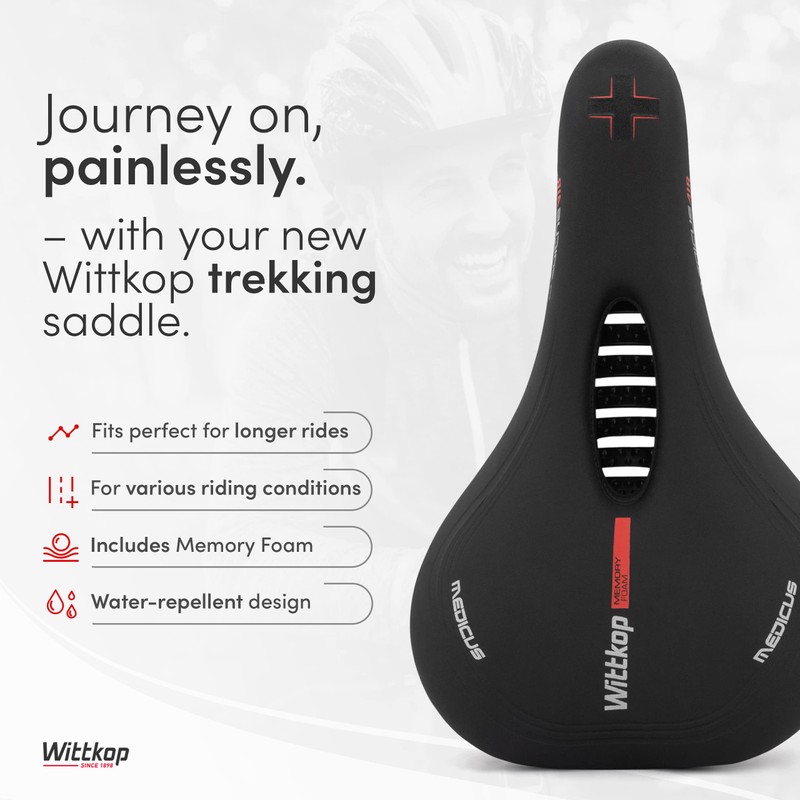 - ENHANCED AIRFLOW SYSTEM - The internal braces of the Wittkop saddle for trekking bikes guarantee an innovative air ventilation, so that unpleasant sweating in your intimate areas is a thing of the past!