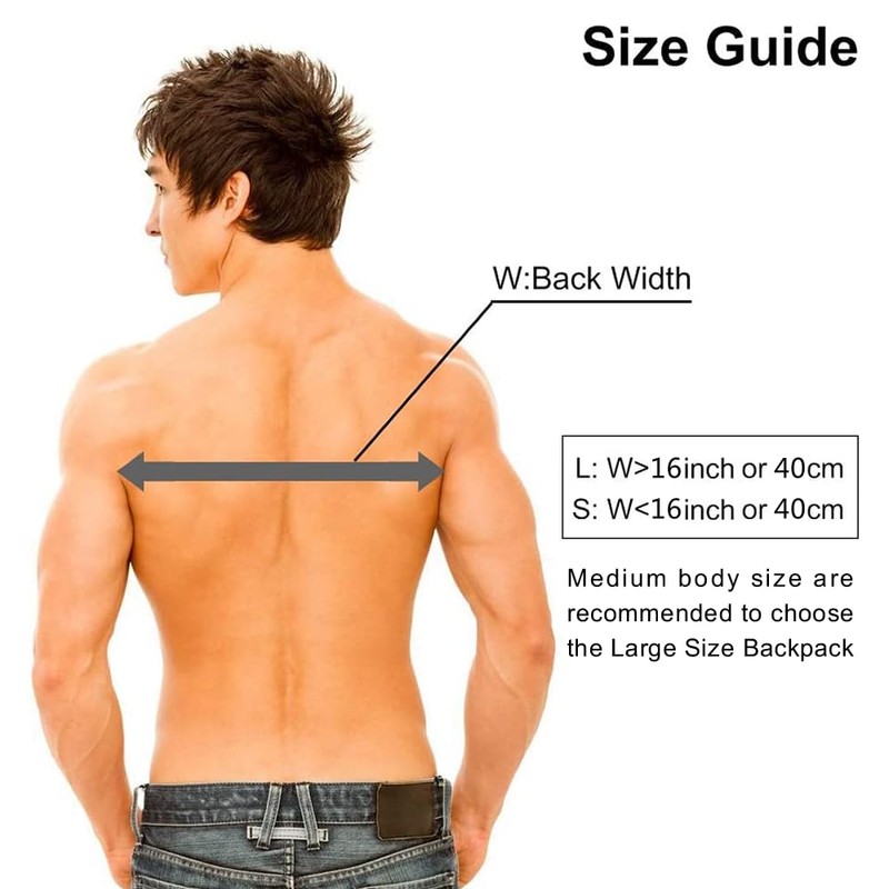 - Size Guide - Two sizes are available. Measure your back width between your armpits but not including your arms. Large size is for back width larger than 16 inches (40 cm). We provide a three-month airbag warranty. Please contact us for a free airbag replacement within the warranty period.