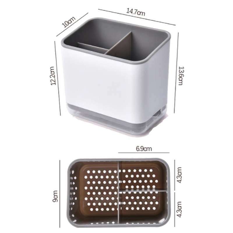 XFLYP Utensil Holder Cutlery Drainer Sink Caddy, 3 Compartments with Drainer, Cutlery Holder for Kitchen and Bathroom Storage Plastic Tableware Storage Drain Box Sink Cleaning Up (Yellow)