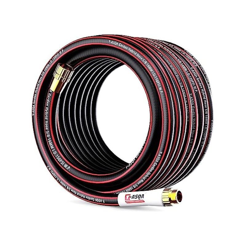 YASQA Heavy Duty Garden Hose 100 ft 5/8 Inch, Contractor's Leak Proof Durable No Kink Easy Coil Flexible Hose Black & water hose 100ft