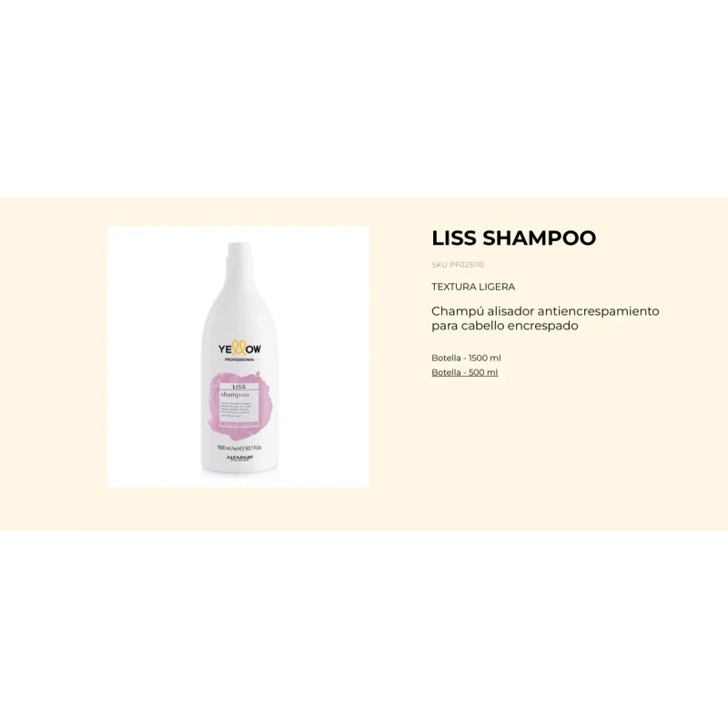 Yellow Liss Shampoo Alisador | 1500 ml | Control de Frizz y Suavidad Intensa | Cabello Liso y Sedoso | Uso Profesional