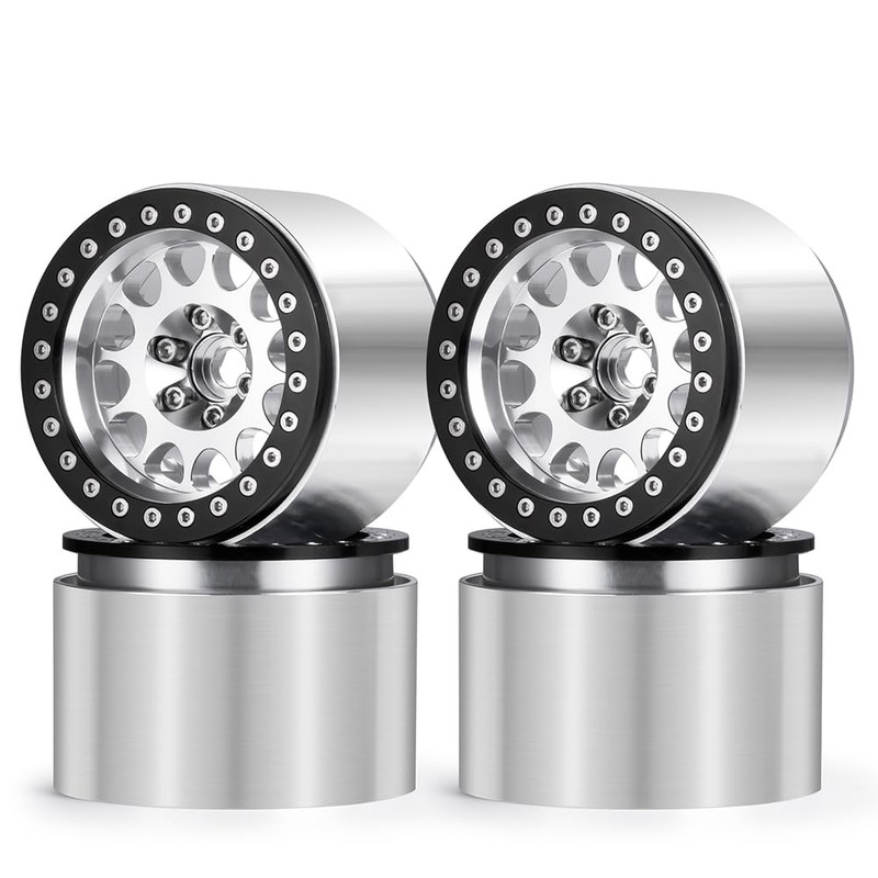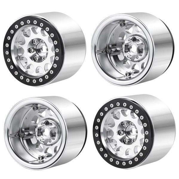 ZHRCFUN Pack of 4 2.2 RC Rims Beadlock Wheels 45 mm for Axial SCX10 Capra 90046 90048 TRX4 TRX6 Wraith RR10 D90 CC01 Redcat Gen 8 1/10 RC Crawlers (Silver)