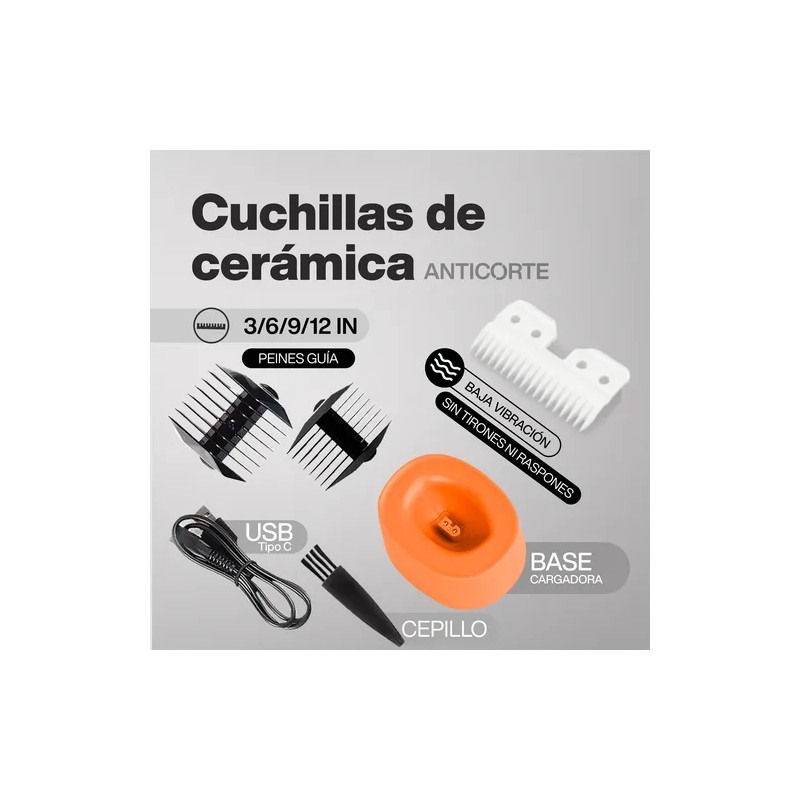 Con certificación IPX7, es resistente al agua para usar dentro o fuera de la ducha por hasta 30 minutos. Su diseño ergonómico garantiza seguridad y comodidad en cada uso. Las cuchillas de cerámica evitan tirones y raspones. Con cuchillas y cuatro guías de peine a longitud de 3/6/9/12 in.