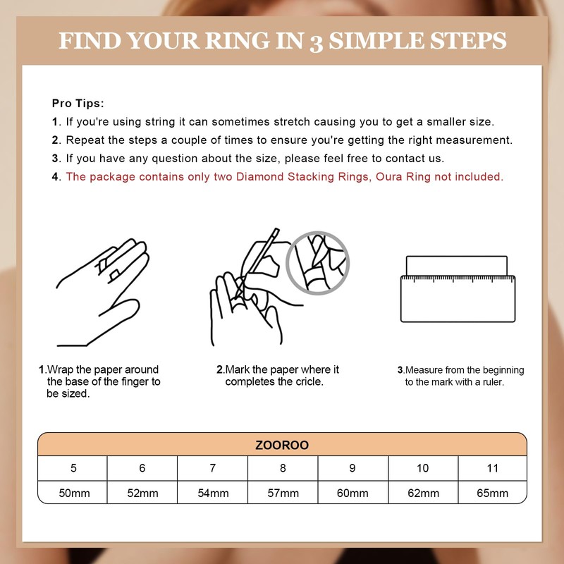 - 【Oura Ring Stacking Ring】Perfectly matches oura ring or other smart rings to elevate your ring's style. A variety of sizes for you to choose from (Size 5-11). Please choose the stacking ring size according to your finger size by the size reference chart. Package included: 2 pack stackable rings(Smart Ring Not Included).