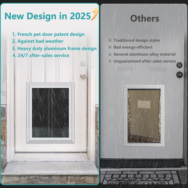 - Innovative Design for Durability and StyleThe French Dog Door boasts a heavy-duty aluminum frame and a sophisticated double-opening panel design inspired by French elegance. The dark blue translucent panels not only add a stylish touch but also provide UV protection, ensuring your pet enjoys safe outdoor access.