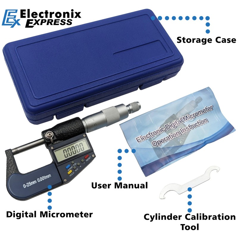 0-1" Range (0-25mm) Digital Micrometer with 6 Digit LCD Display, 0.001mm Resolution, Features mm/inch Conversion Button - EX ELECTRONIX EXPRESS