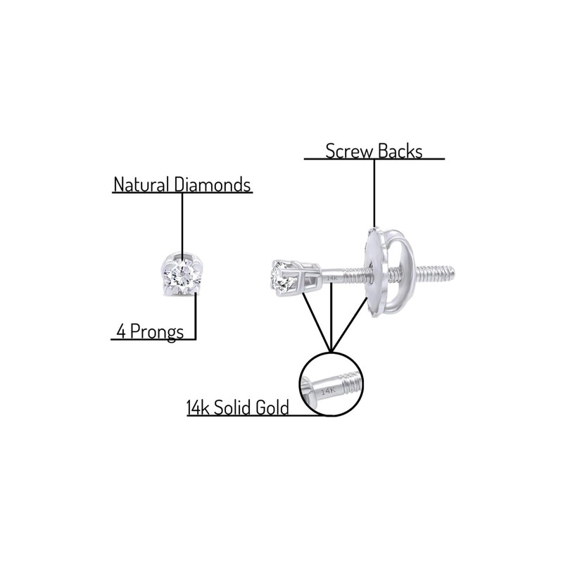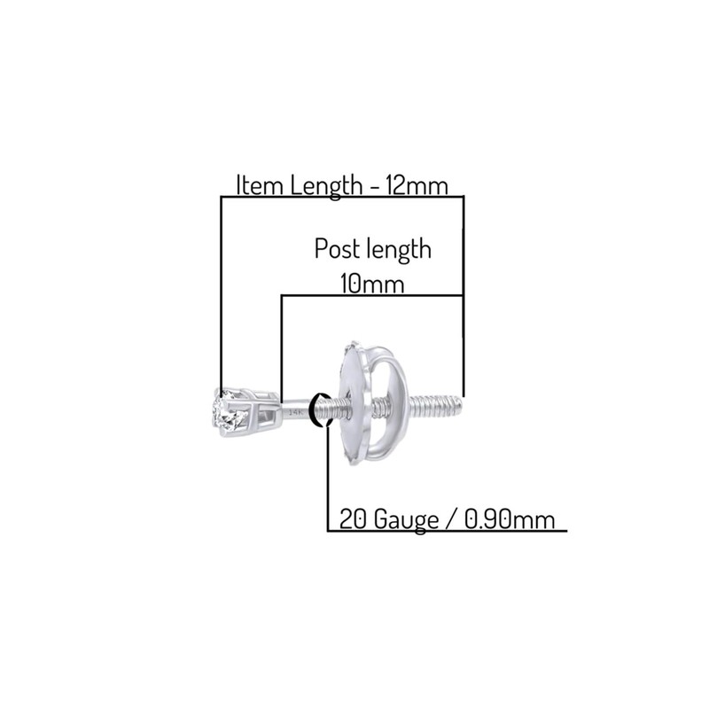 - 0.10 Cttw Round Lab Grown Diamond stud Screw Back Earrings set in 14K Solid White Gold