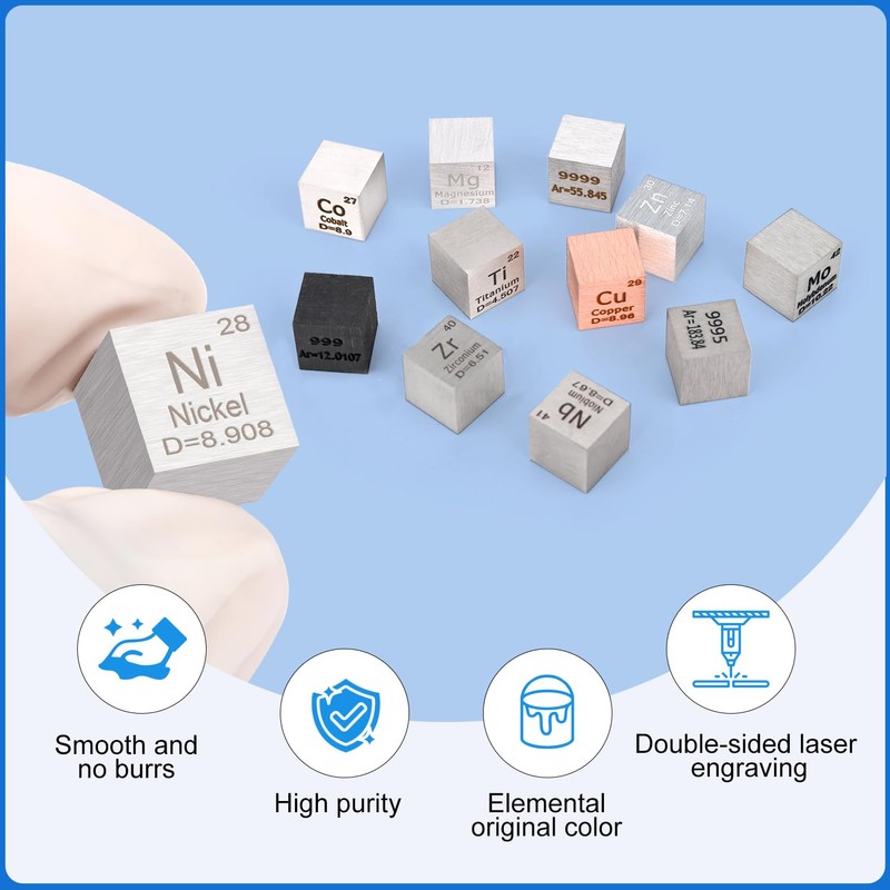 • HIGH PURITY: Nickel metal cubes have an outstanding purity level of 99.5%. With the color of natural metal, they restore the true texture and surface of the metal elements. They are completely non-toxic and safe for users of all ages.