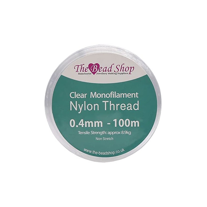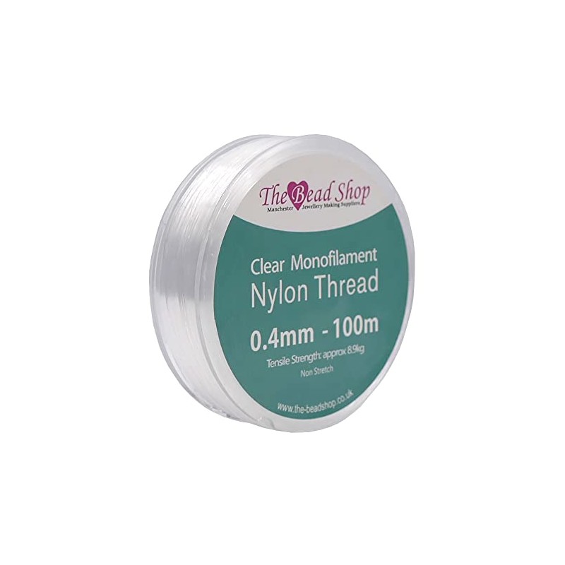 - Clear Nylon is a popular choice for bead weavers, jewellery makers, crochet, and other crafts requiring invisible stitching. Suitable for use with necklace & bracelets stringing. Available in three thicknesses - something to suit all needs.